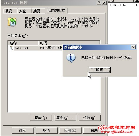 只要我们启用了卷影副本,我们可以右键单击此文件,打开文件的属性,然后选择恢复到以前的那个版本,选择一个以前的版本,如图9: