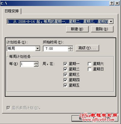 再单击图4中的“计划”按钮来设置生成卷影副本的时间计划,如图5: