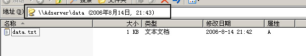 首先我们在到服务器下先共享一目录,如目录“data”,共享名为:data 。在此共享目录下新建一个文档,如新建一个文本文件,名称为data.txt,双击data.txt,编辑其文档,为了标识此文档,编辑的内容如图7: