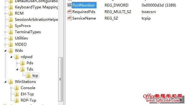 2.找到 HKEY_LOCAL_MACHINE\System\CurrentControlSet\Control\Terminal Server\Wds\Repwd\Tds\Tcp