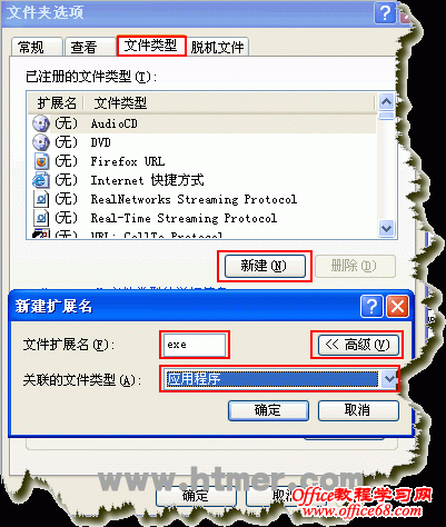 [hkey_classes_root\exefile\shell\Open\command] @=\%1\ %* 方法三:重新关联exe文件 打开我的电脑→“工具”菜单→文件夹选项→文件类型→新建→在“文件扩展名”中输入exe→点击“高级”按钮→在“关联的文件类型”中选择“应用程序”即可,相关截图如下所示: