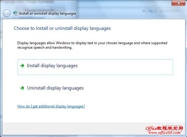2、弹出安装和写在显示语言对话框,点击Install display languages,安装显示语言,如果后期需要卸载语言包也是在这里选择下面一项即可。