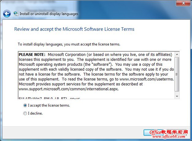 5、然后接受语言包的安装许可协议(I accept the license items)并点击Next,如下图: