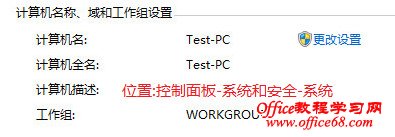 3、查找自己计算机名方法(插) 点击开始菜单,在计算机上点击鼠标右键,选择属性,可以看到系统属性窗口中有自己的计算机名称、域和工作组设置位置,比如下图中的Test-PC就是天缘的计算机名称。