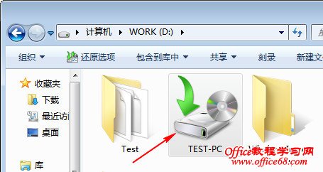 备份后,可以在备份盘下看到绿色箭头加光盘形式的图标,如下图所示(图中左侧Test-PC是数据文件备份结果,右侧WindowsImageBackup是映像备份结果),双击这个图标可进行还原操作。具体还原方法,参加天 缘稍后的专题文章,后面把几种还原方法放到一起介绍。