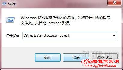 远程桌面执行文件为mstsc.exe,如果您将远程桌面放置在指定位置(例如:D:\mstsc \mstsc.exe),那么可以点击“开始”---“运行”,在运行中输入D:\mstsc\mstsc -consfl点击“确定”,弹出远程登陆对话框,按照常规方法登陆即可