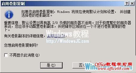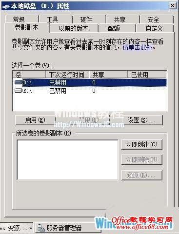 为了保护共享信息的安全,单位局域网往往会对重要的共享资源进行合适的共享权限设置以及安全属性设置,同时会对共享资源进行定期备份操作;用户连接到局域网中后,通过网上邻居窗口就能安全访问到目标共享资源,从而大大方便了工作。不过,经过一段时间的访问之后,许多用户常常抱怨说在访问共享资源的过程中,被临时修改或意外删除的文件无法象系统回收站那样被快速还原;要是网络管理员强硬地在服务器系统中对目标资源进行还原时,又容易影响其他共享访问用户的内容状态,那么我们该如何实现按需恢复的目的呢?其实在Win2008系统环境下,我们可以借助该系统自带的卷影副本服务,就能轻松实现按需恢复的目的。 认识卷影服务 虽然卷影副本服务,早在Win2003服务器系统就已经出现了,可是在Win2008系统环境下该功能得到了明显提升,巧妙地使用该功能我们能够为局域网中的重要共享资源创建即时点副本,日后局域网用户不小心删除或修改了其中的共享文件时,可以尝试通过访问对应共享资源的卷影副本,来将目标文件内容快速还原到正确的状态。不过,要想享受到卷影副本服务,我们不但需要在Win2008服务器系统中对卷影副本服务功能进行正确的设置,而且还需要在客户端系统中安装相应的控制程序。 正确安装设置好卷影副本服务后,我们应该在平时共享资源正常的情况下及时创建即时点副本,日后发现自己的共享资源不小心被删除时,我们可以在客户端系统打开目标共享资源的属性设置窗口,之后在对应窗口的“以前的版本”标签页面中,选择之前创建好的某个时间点的卷影副本,就能轻松将不小心删除的文件恢复到特定时间的版本。 为了让局域网用户享受到卷影副本服务,我们应该先以系统管理员权限登录进入Win2008服务器系统,双击桌面上的“计算机”图标,在其后窗口中找到目标共享资源所在的磁盘分区,并用鼠标右键单击该分区图标,从弹出的快捷菜单中执行“属性”命令,打开目标磁盘分区的属性设置窗口; 单击该设置窗口中的“卷影副本”标签,打开如图1所示的标签设置页面,选中共享资源所在的目标磁盘卷,再单击“启用”按钮,随后系统屏幕上将会自动弹出如图2所示的提示窗口,继续单击“是”按钮,那么Win2008服务器系统就能按照缺省设置启用好目标共享资源的卷影副本功能了。
