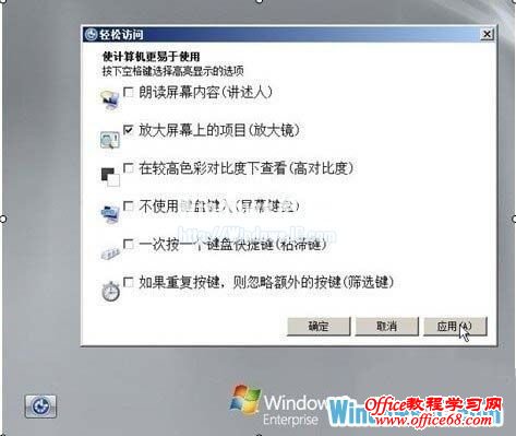 然后重新启动系统,到登陆界面,然后打开放大镜