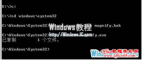 然后打开命令提示符:先备份放大镜,然后用CMD替换