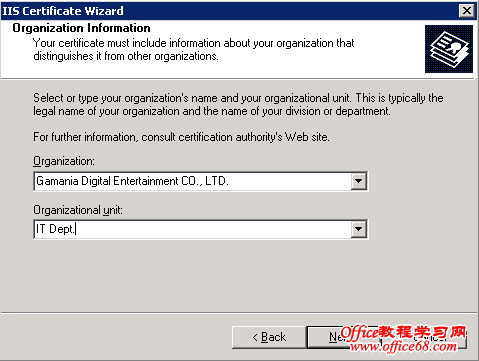 8. 输入单位信息和部门信息: