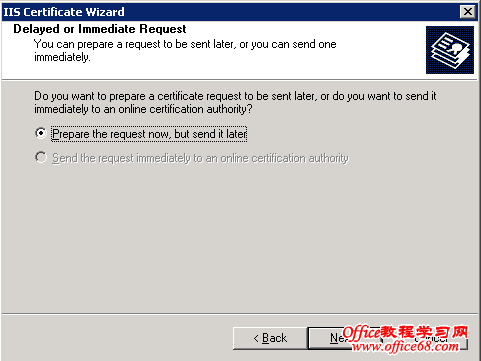6. 选择“现在准备证书请求,但稍后发送”Prepare the request now, but send it later。