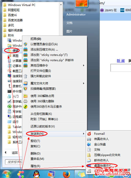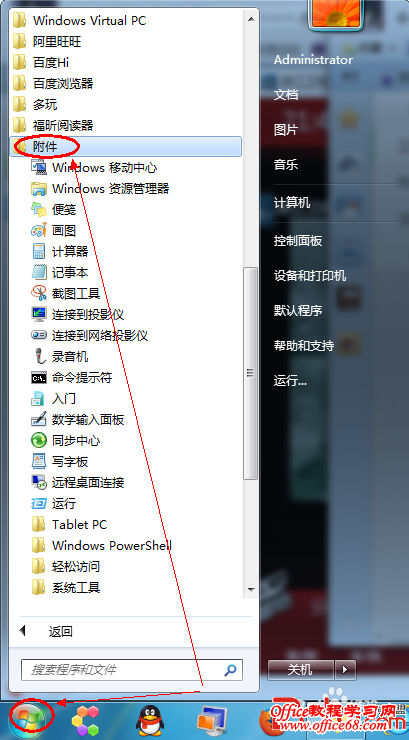 依次打开电脑菜单项开始--所有程序--附件;在附件文件夹下有很多小工具,找到便签小工具。 |