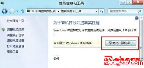 不知道网友们知不知道在win8系统中可以评价我的计算机,还有进行打分;这样可以知道我们的计算机是优秀还是良好的状态。但是要怎么的进行操作呢!现在我们一起去看看吧! Win8为计算机评分的方法如下: 1、同时按下“Win+Pause Break”组合热键,或在系统属性中点击“控制面板”。 ![]() 2、通过查看方式设置“大图标”找到“性能信息和工具”。 ![]() 第2步 3、打开的界面找到“为此计算机评分”。 ![]() 第3步 4、接下来开始评分过程,会经过Direct3D 9 Aero、Windows Media 解码性能、CPU 性能、磁盘性能等几项评估。 ![]() 第4步 5、评分完成,“基本分数”会按评分项目中最低分给出分数。 ![]() 第5步 以上图文详细的五个步骤说明了怎么对我的计算机进行评分;让我们看到计算机的状态和好坏,很有用的方法,还能经常的测验计算机的安全哦 |