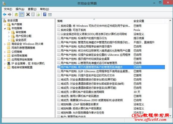 我们在窗口的左侧找到 本地策略 - 安全选项,在右边找到“用户帐户控制: 用于内置管理员帐户的管理员批准模式”,然后右键 - 属性,勾选“已启用”,确定后重启下系统就OK了。 |
