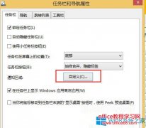 Win8的操作中心就是任务栏右下角那个小旗子。操作中心经常发布一些系统的安全维护信息。但是有些Win8用户却找不到操作中心。那么应该怎么样恢复Win8系统的操作中心呢? 1、点键点击任务栏,选择属性; 2、打开开始菜单和任务栏属性后,点击通知区域自定义按钮; 3、然后到了通知区域图标界面,还需要点击启用或关闭系统图...