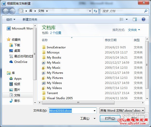 第3步,在打开的“根据现有文档新建”对话框中选择新建文档的保存位置,并输入文件名称,然后单击“新建”按钮即可,如图所示。
