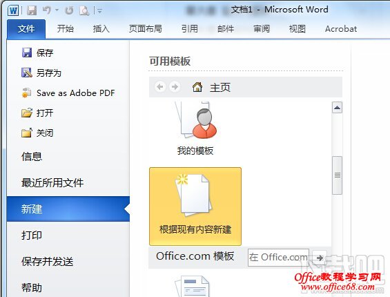 第2步,打开“新建文档”对话框,在左窗格中单击“根据现有内容创建”按钮,如图所示。