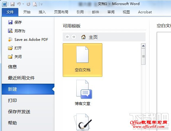 第1步,打开Word2010文档窗口,依次单击文件→“新建”按钮,如图所示。