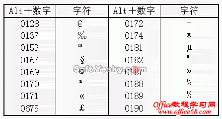 用"A1t"键加小键盘上数字键的组合方式也可以输入一些特殊字符。如:输入欧元符号?上劝聪?Alt"键,然后在小键盘上键入128这四个数字,放开"A1t"键,欧元符号是不是出现了。下表是一些常用的符号对应的数字。