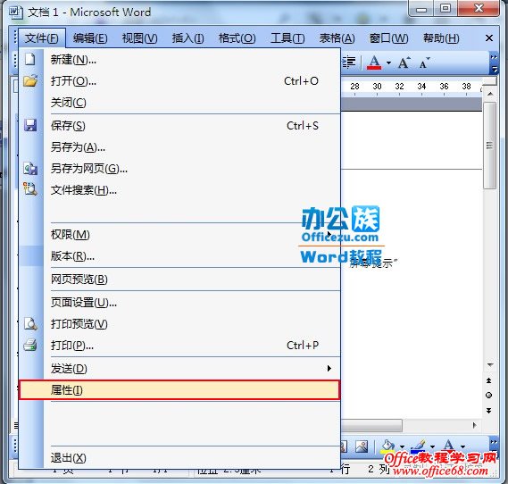 1 打开文档点击“文件”→“属性”。