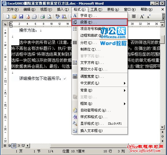 2 在“段落”设置中选择“缩进和间距”将对其方式改为“左对齐”。