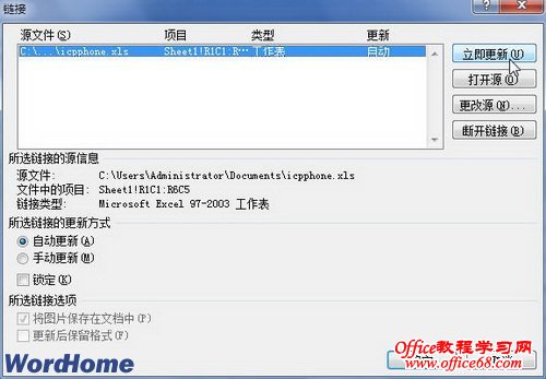 在Word2010文档中将链接设置为“手动更新”方式后,用户可以通过以下两种方式手动更新链接: 操作步骤