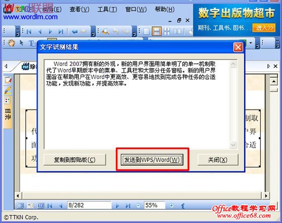 ③此时会弹出一个“文字识别结果”对话框,我们单击“发送到WPS/Word”按钮;