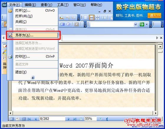 ①直接在CAJ阅读器中单击“文件”中的“另存为”按钮;