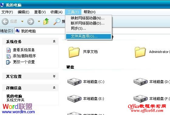 打开“我的电脑”,点击“工具”中的“文件夹选项”;