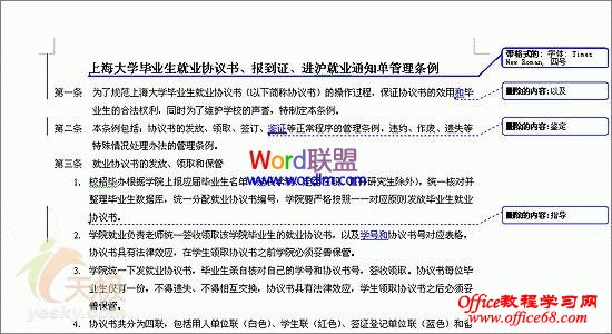 怎么样,很兴奋吧?可我们发现,Word自动生成的的这个校对页面与我们平时的校对习惯不太一样,比如首先它没有使用标准的校对符号(比如删除线、插入点什么的),而且它将所有的修改都自作主张地以“删除的内容”形式显示出来(无论是插入的还是修改而来的),让人看起来很不习惯。