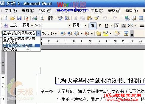 其实,这只是Word校对的默认显示方式问题罢了,对此我们可以通过修改其标识显示方式来解决。Word现在默认的是使用“显示标记的最终状态”,我们只要把它改成“显示标记的原始状态”就可以了。