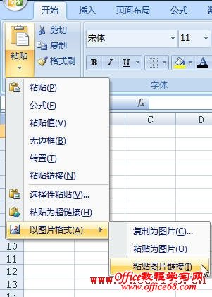 大家知道,在Excel 2003中有个照相机工具,Excel 2007中同样有这个功能。但在功能区中却无法找到“照相机”按钮,因为这个命令属于“不在功能区中的命令”,可以通过自定义“快速访问工具栏”将“照相机”命令按钮显示在“快速访问工具栏”中。这显得有些繁琐。其实在Excel 2007中用复制粘贴的方法也可以实现“照相机”功能,方法如下: 1.复制所需的区域,然后选择需要粘贴的位置。 2.在功能区中单击“开始”选项卡,在“剪贴板”组中单击“粘贴”按钮下方的下拉箭头,在弹出的菜单中选择“以图片格式→粘贴图片链接”,如图。 用这种粘贴方式得到的图片和“照相机”完全一样,也可以跟踪原区域的数据变化,只不过所粘贴的图片是默认透明的,单击该图片也不会在功能区中出现“格式”选项卡。如果要设置图片格式,可以右击图片,选择“设置图片格式”命令,弹出与Excel 2003完全相同的“设置图片格式”对话框,然后进行设置即可 |