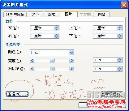 首先将word文档打开,然后选中一个图片,右键单击,选中“设置图片格式”,你会在对话框的左下角有个压缩键,看到了这里,你也就应该找到方法了,压缩完之后,原来60多M的文件,变成了9M的文件。这里有个前提,office软件应该是office2003,officexp行不行不知道,我没有测试。有兴趣的朋友可以自己尝试一下。操作图片如下:
