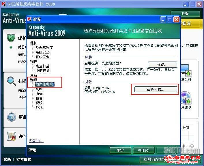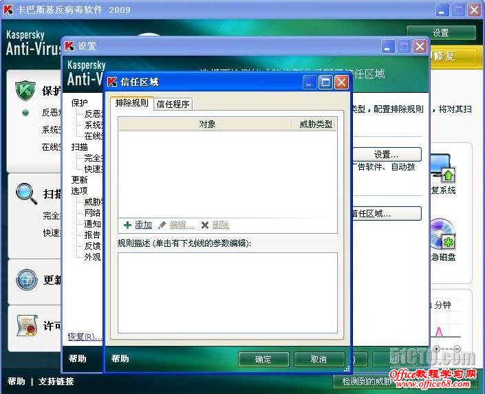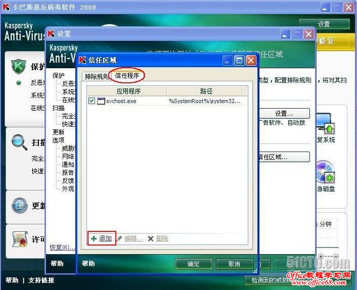 此外,网上还提供了在卡巴得“信任程序 ”添加进WORD的方法。具体方法就是设置——选项—威胁和排除—信任区域—信任程序—添加,接着找到相应得安装路径,添加进即可。 ![]() ![]() ![]() 还有一种和注册表有关。需要先关闭卡巴斯基的自我保护,也就是在“设置”中找到“选项”—“启用自我保护”,去掉前面的勾选,确定。再打开注册表,展开到HKEY_LOCAL_MACHINE\SYSTEM\CurrentControlSet\Services\KLIF\Parameters 新建NonCachedIo,类型Dword,健值为1。重启电脑后,再勾选上“启用自我保护”。由于此方法涉及到注册表操作,故而一般不做考虑,除非必要。而且在网上也有朋友说在这里无法创建键值,究竟可信度如何,有待亲自尝试。与此方法相通得还有一种方法,据说是卡巴俄罗斯员工放出来的一个注册表补丁,据说也很有效。方法是将REGEDIT4 [HKEY_LOCAL_MACHINE\SYSTEM\CurrentControlSet\Services\KLIF\Parameters] "NonCachedIo"=dword:000001 复制到一个文本文件中,然后将此文本文件另存为扩展名为.REG的文件,双击.REG文件运行即可。