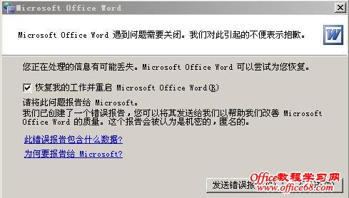 Microsoft Office Word 2003 遇到错误需要关闭?