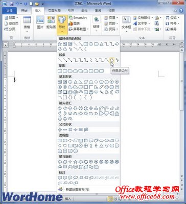 Word2010的自选图形库中内置有多种多边形,例如三角形、长方形、星形等。但这些形状均为有规则的图形,用户在使用这些图形绘制自定义的图形时会受到一定的限制。用户可以借助Word2010提供的“任意多边形”工具绘制自定义的多边形图形,操作步骤如下所述: 操作步骤