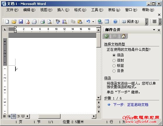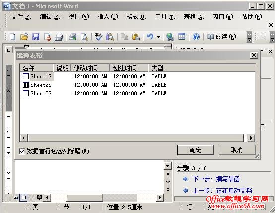 3、出现邮件合并向导: