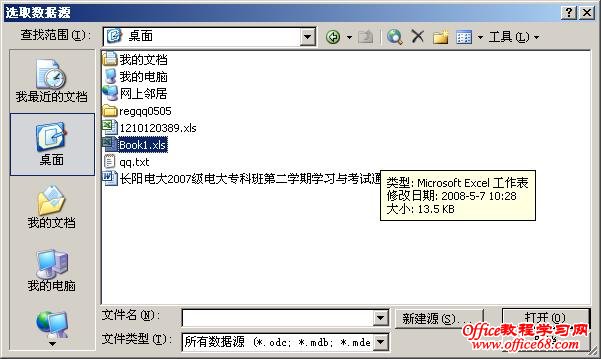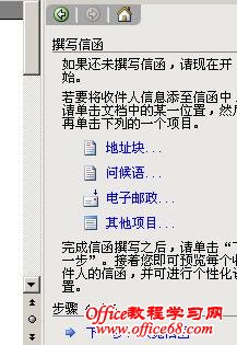 选择右边向导中的“信函”复选框,下一步“正在启动文档”----默认的“当前文档”----下一步“选取候选人”----默认“使用现有列表”----下一步:“撰写信件”,到这里一直是下一步,到了这里,要选取数据源了,出来一个浏览窗口。