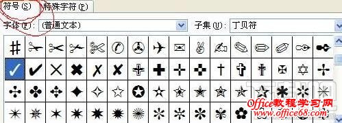 如果符号下拉页中有“√”符号,则选中,若没有,则选择其他符号