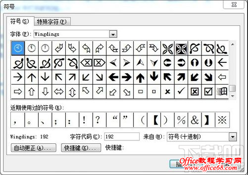2、打开Word文档,打开菜单栏的“插入”中“符号”,在弹出的“符号”窗口中的“字体”的下拉列表中选择“Wingdings”,然后将鼠标拖到最下面,你就可以看见 “√ 钩”和 “×叉”了,选中后单击插入即可。