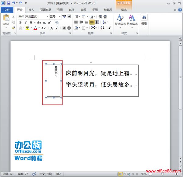 在Word中,我们想单纯的利用“文字方向”命令来改变同一个页面的部分文字方向是不现实的,要改变只能改变当前页面的所有文字方向,所以这种纵横混排的文字编辑就需要利用其他工具了,这个工具就是文本框。 操作步骤