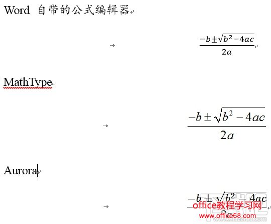 下图是二次方程求根公式的三种公式编辑器的对比图,好像都还好。