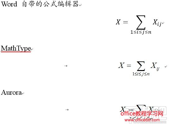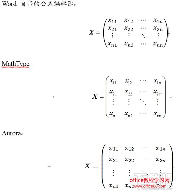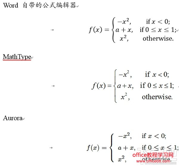 其实我不用 Word 自带的公式编辑器或者是 MathType 的最主要的原因就是,这两个产生的公式太丑了。美丑这个东西仁者见仁,我的审美也不是最优秀的,我贴几张对比图,如果感觉 Aurora 产生的公式最漂亮,可以继续往下看,如果感觉差不多,可以跳过这一章。