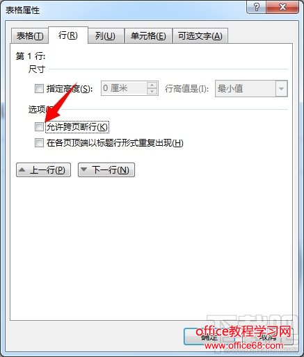 然后设置表格属性,去掉“允许跨页断行”复选框。