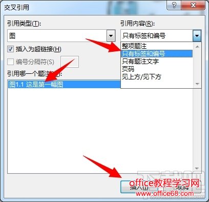 下方的列表中就出现了刚刚我们插入的那幅图。引用的内容有很多种,这里我们只需要“图1.1”,也就是标签和编号。