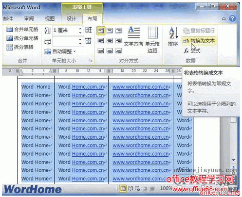 在将文档中表格转化为文字方面,Word 2010余以前版本具有相同的功能,只不过更为强大,而且在坐的位置发生了改变。在Word2010文档中,用户可以将Word表格中指定单元格或整张表格转换为文本内容,前提是Word表格中含有文本内容,操作步骤如下所述,希望对您有所帮助!