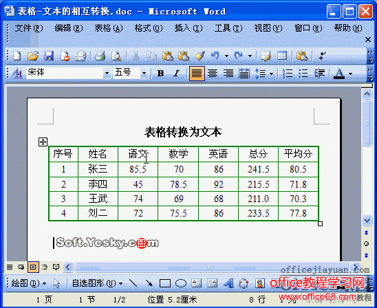 ①如果要转化部分行,需先将这些行选定,如果要转化表格的全部,则需全选表格或将插入点置于表格中;