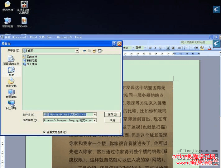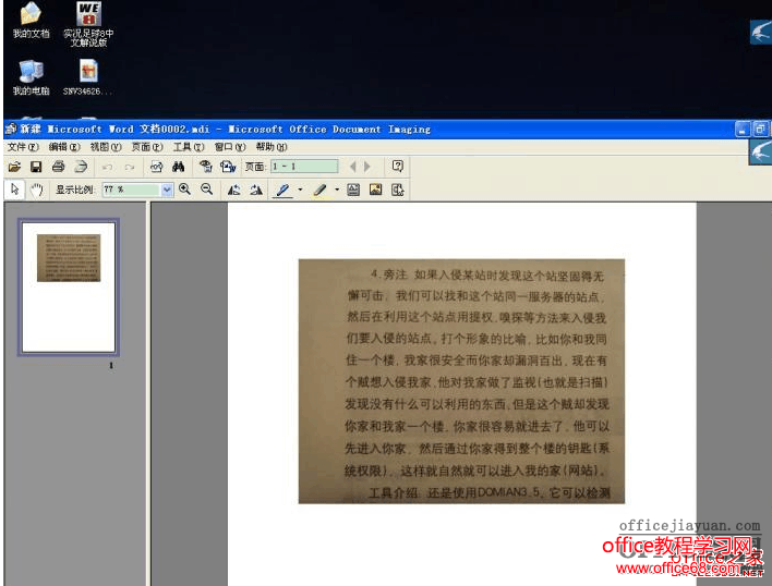 7.再点击保存后office会自动启动Microsoft Office Document Imaging组件打开你刚刚保存的文件。