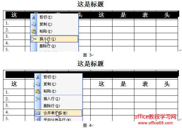 这样做的目的是将表外标题放入表格合并单元格后的第一行,表头放在第二行。