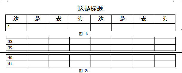 一般我们制作表格时因表格行数多或行距超出一页,但又希望在以后各页中反映表格的标题,往往选中表格标题行后通过 菜单栏→表格→标题行重复 来实现。 今天由于要将表格的表头标题与表外标题(如图1)一同显示在第二页及以后各页中(如图2),请问如何实现?